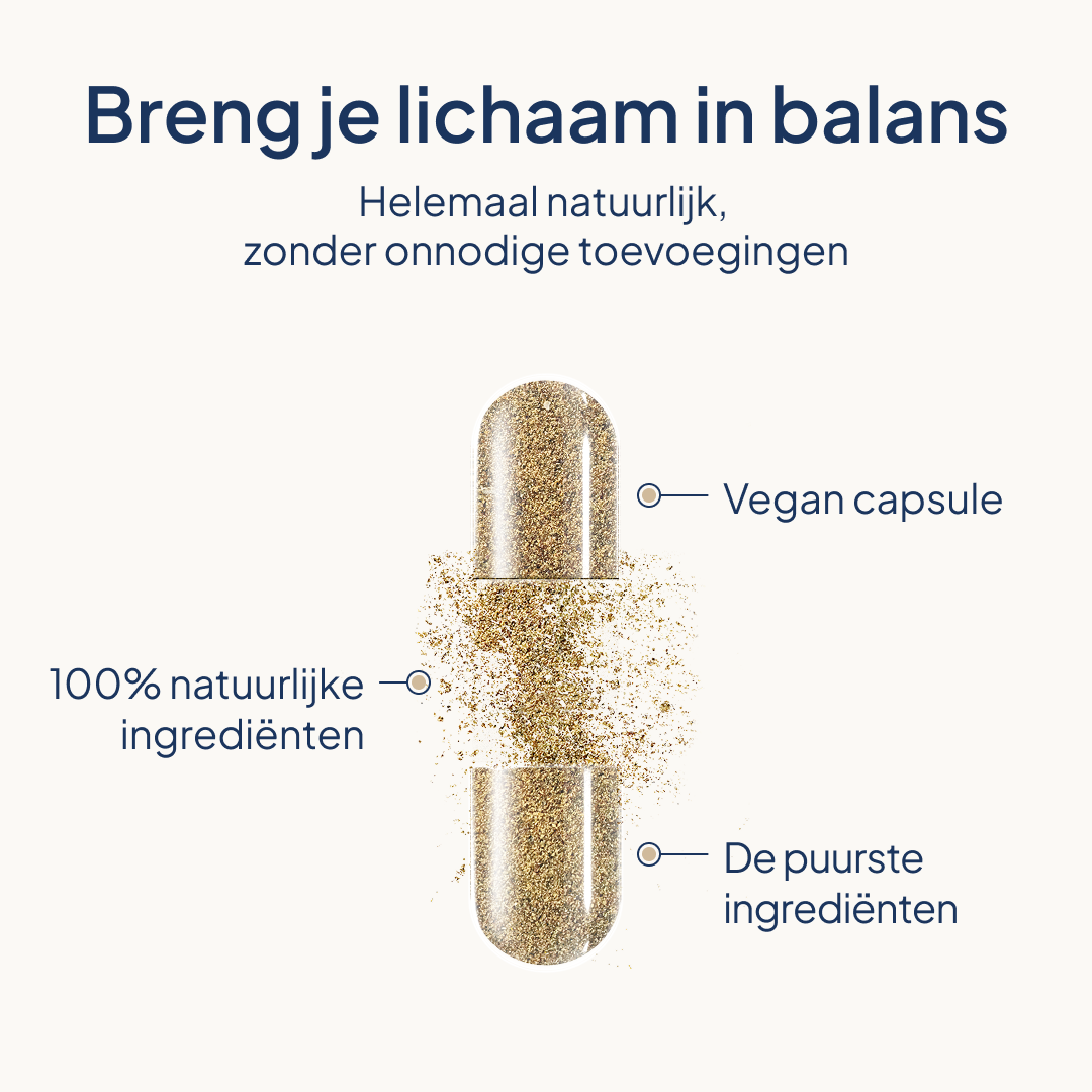 Onze 100% natuurlijke Nachtcapsules combineren krachtige plantenextracten, adaptogenen, mineralen en vitamines om je nachtrust te optimaliseren. Deze formule is zorgvuldig samengesteld om je lichaam en geest te helpen herstellen, zodat je elke ochtend verfrist en vol energie wakker wordt.